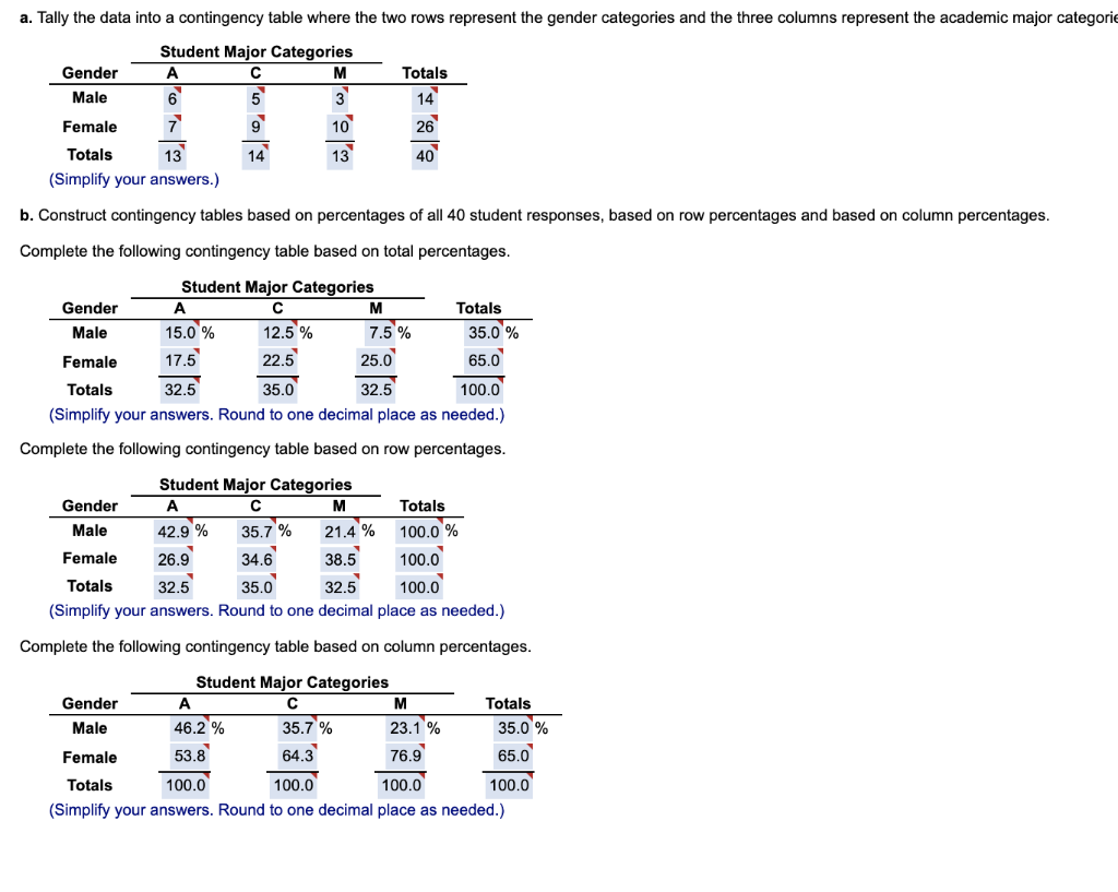 Solved A Tally The Data Into A Contingency Table Where The Chegg Com